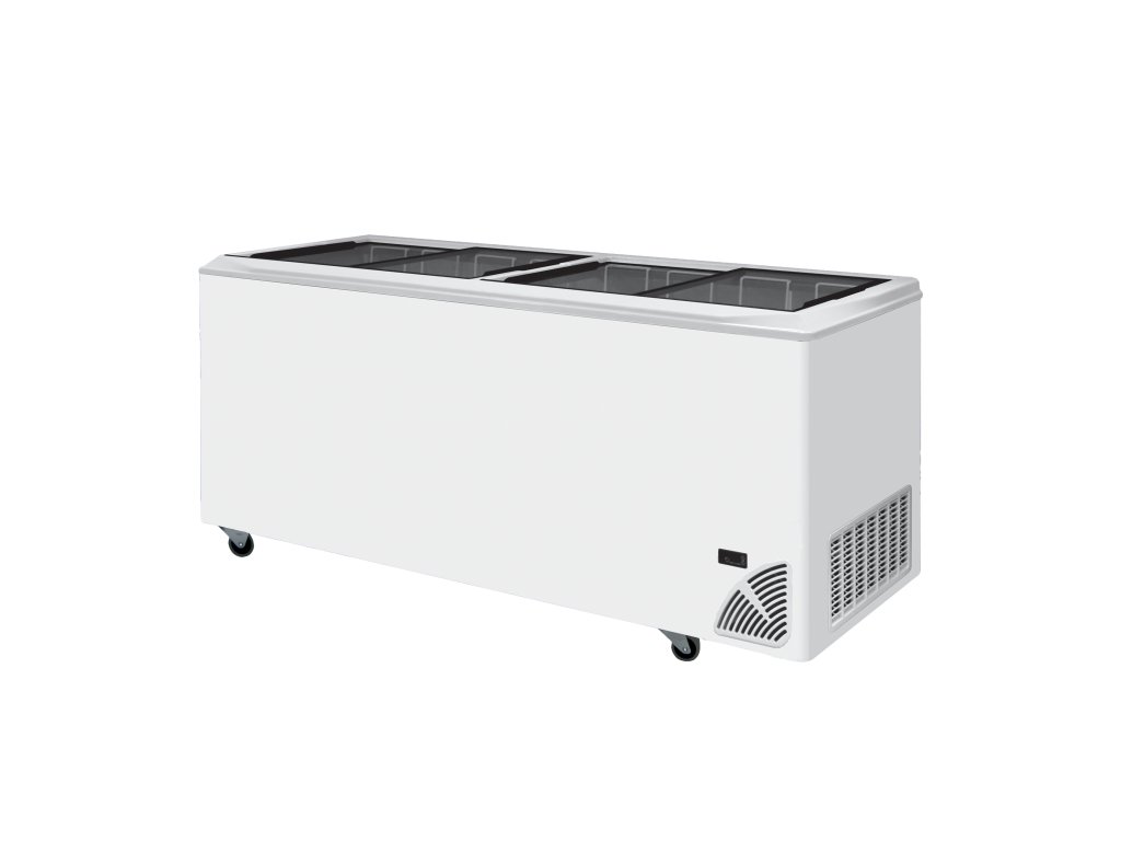 Prosklené mrazničky Byfal jsou k dostání ve třech bravách: červená, šedá, bíla a ve dvou provedeních: s rovným víkem a oblým víkem. Vyznačují se vynikajícími izolačními vlastnostmi. Vnější plášť je vyroben z pozinkovaného plechu, ten je z vnější strany potažen PVC, což jej činí odolnější proti korozi a poškrábání. Vnitřní stěny mrazničky jsou z Alu plechu o čistotě 99 % mimo dna, to je vyrobeno z ocelového plechu s povrchovou úpravou pro styk s potravinami. Vrchní krytí je z tvrzeného skla s termickou vrstvou,která zajistí lepší izolaci.Víko je opatřeno zámkem. Kompresor řídí digitální termostat s displejem, který znázorňuje aktuální teplotu. Ve standardní výbavě se nachází plný počet košů, do kterých je možno objednat dělící přepážky pro rozdělení mražených potravin.statické chlazení|vestavěný agregát|manuální odmrazování|digitální termostat s teploměrem|síla izolace stěny - 65 mm|bílé opláštění, uvnitř ALU|koše jsou součástí|zámek|kolečka