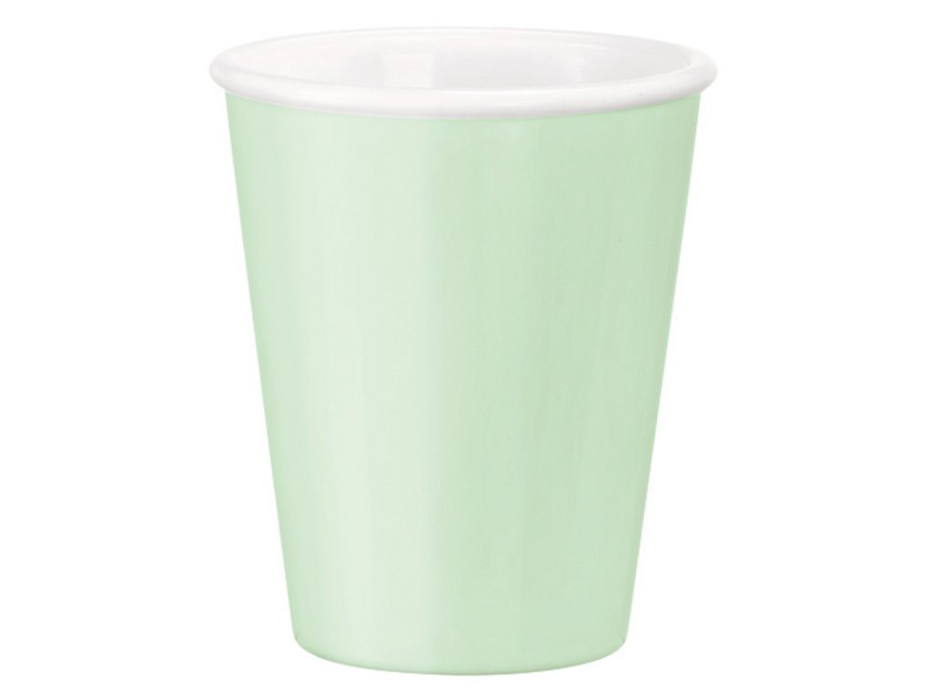Aromateca šálek v pastelově zelené barvě oživí váš jídelní stůl. Díky svému materiálu jsou šálky odolné vůči odštípnutí a poškrábání a poskytují naprostou hygienu. Kolekce je ideální pro použití ve školských či zdravotnických zařízeních.