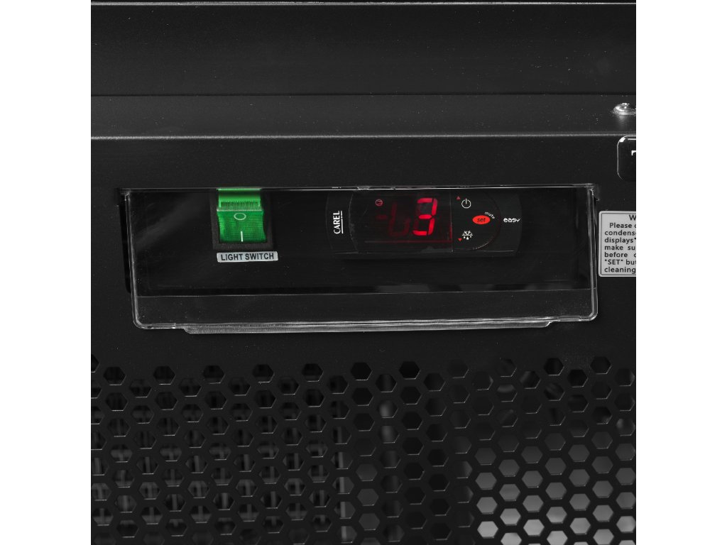 Řada chladicích skříní s prosklenými dveřmi Atom Maxi nabízí skvělou kvalitu za konkurenceschopnou cenu. Je vybavena dvěma nebo třemi samozavíracími prosklenými dveřmi, LED osvětlením a nastavitelnými policemi pro optimální prezentaci výrobků. Disponuje účinným ventilačním chladicím systémem, který zaručuje nízkou spotřebu energie, a snadno ovladatelným regulátorem teploty. K dispozici také v mrazicí verzi.vynikající prezentace produktů|černý interiér a exteriér|nízká spotřeba energie|samozavírací prosklené dveře na pantech|dvojité tvrzené sklo|vnitřní svislé LED osvětlení|ventilované chlazení|nastavitelné police|spodní výstavní plocha nerezová |digitální termostat a teplotní displej|dostupné také v mrazicí verzi