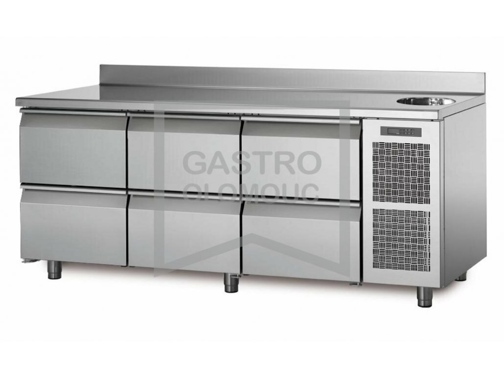 Chladící stůl TA17/6MS s deskou, dřezem a zadním lemem