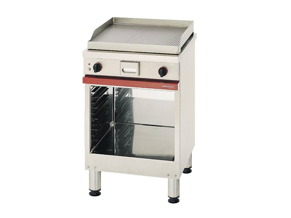 Plynová grilovací deska CMG 610 SRK od francouzského výrobce AMBASSADE DE BOURGOGNE. * Deska na grilování a smažení. * Vroubkovaná gril. plocha, ocelová. * 2 na sobě nezávislé tepelné zóny. * Elektrické zapalování. * Termopojistka. * Sestava je složena z vrchního modulu a skříňky na stavitelných nohách. * Vyjímatelná zásuvka nečistot o objemu 1,5 l. Skříňka je bez dvířek CPM a vodících lišt ECH – lze dokoupit.
