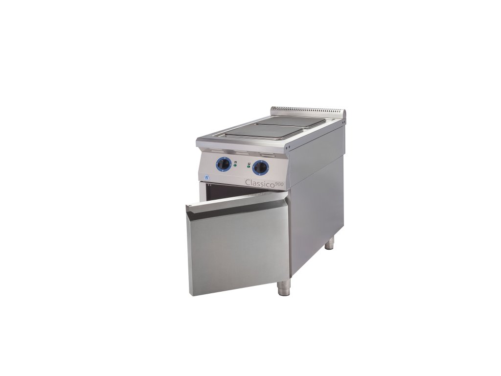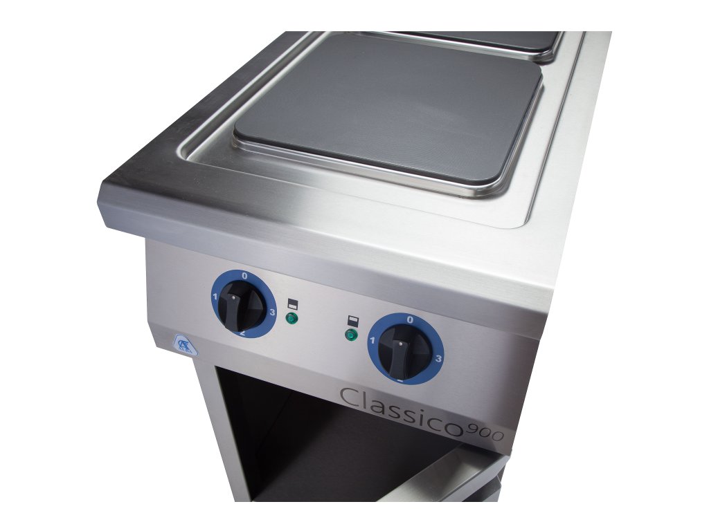 Velká šířka přístroje 450 mm - dostatečný varný prostor. 4 kW na jednu plotýnku - vysoký výkon pro efektivnější provoz, rychlé přivedení k varu. Termostatická ochrana proti přehřátí - větší životnost a nižší servisní náklady. Celonerezová konstrukce z kvalitní potravinářské oceli AISI 304 - EN 1.4301. Regulace topných těles čtyřpolohovým přepínačem. Signálka zapnutého stavu. Podstavce v několika variantách, vždy opatřeny všemi seřizovatelnými nožičkami. Se zadní zvýšenou odvětrávací mřížkou - lehce demontovatelnou pro vyčištění.Doplňkové parametry
