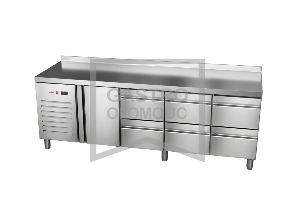 Robustní pracovní desky z nerezové oceli o tloušťce 50 mm se 100 mm vysokým zpětným dostřikem jako standardní volitelná výbava, která zabraňuje rozlití za pultem. Přizpůsobení je k dispozici v různých konfiguracích (bez stříkání, bez horní části, s dřezem a materiály (nerezová ocel, žula), aby se přizpůsobily jakýmkoli profesionálním kuchyňským potřebám.