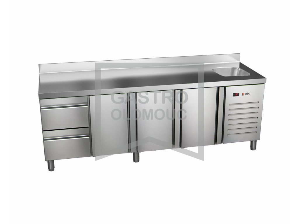 Robustní pracovní desky z nerezové oceli o tloušťce 50 mm se 100 mm vysokým zpětným dostřikem jako standardní volitelná výbava, která zabraňuje rozlití za pultem. Přizpůsobení je k dispozici v různých konfiguracích (bez stříkání, bez horní části, s dřezem a materiály (nerezová ocel, žula), aby se přizpůsobily jakýmkoli profesionálním kuchyňským potřebám.