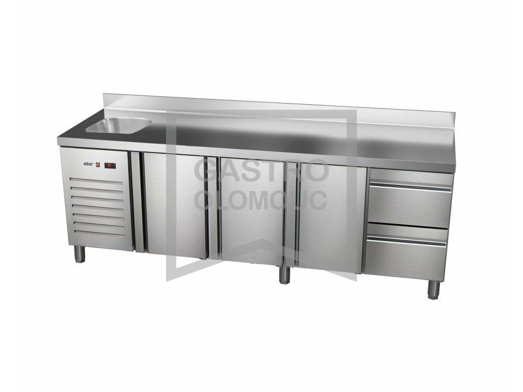 Robustní pracovní desky z nerezové oceli o tloušťce 50 mm se 100 mm vysokým zpětným dostřikem jako standardní volitelná výbava, která zabraňuje rozlití za pultem. Přizpůsobení je k dispozici v různých konfiguracích (bez stříkání, bez horní části, s dřezem a materiály (nerezová ocel, žula), aby se přizpůsobily jakýmkoli profesionálním kuchyňským potřebám.