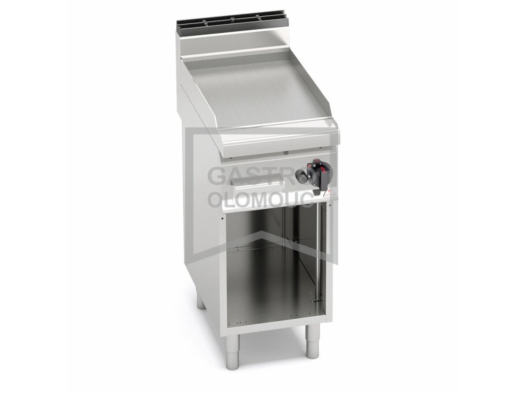 Grilovací desky vyrobeny z nerezové oceli AISI 304. Rovnoměrné rozložení tepla je zajišťují výkonná topná tělesa a plynové hořáky umístěny pod grilovací deskou. Teplotní rozsah 50-270°C elektrické modely, plynové modely regulace výkonu do 300°C. Modely šířky 800mm mají nezávisle ovládání obou zón pro oddělené a šetrné vaření. Mírně nakloněná grilovací deska umožňuje samovolný odtok nežádoucí kapaliny odpadním otvorem do sběrné zásuvky. Provedení grilu s otevřeným podstavcem (příplatkově s dvířky 1P DX nebo 2P400). Širší nabídka (deska- hladká FL / rýhovaná FR / dělená FM / chromovaná CR a popř.vyšší výkon) na vyžádání.