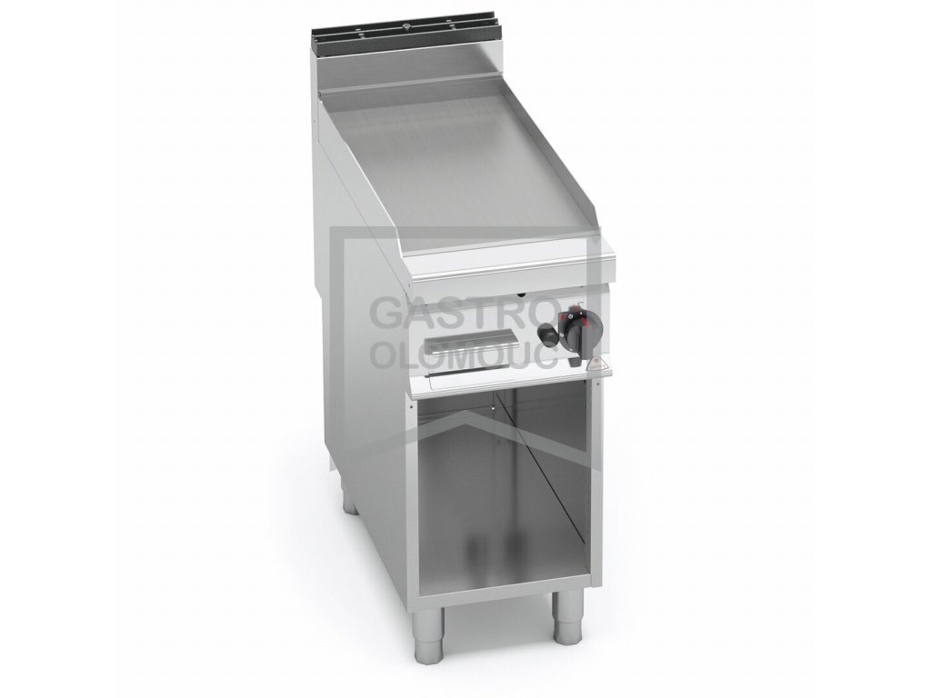 Kompletní sortiment plynových a elektrických ploten s různým provedením grilovací plochy. Lze na nich připravovat pokrmy tzv. "kontaktem" a to nejcitlivějším způsobem. Jednotný systém distribuce tepla zaručuje rovnoměrné grilování po celé pracovní ploše, velké energetické úspory a zlepšení pracovního prostředí. Při grilování se přirozeně tvoří zbytkový olej, který je odváděna shromažďován ve velké odpadní nádobce.