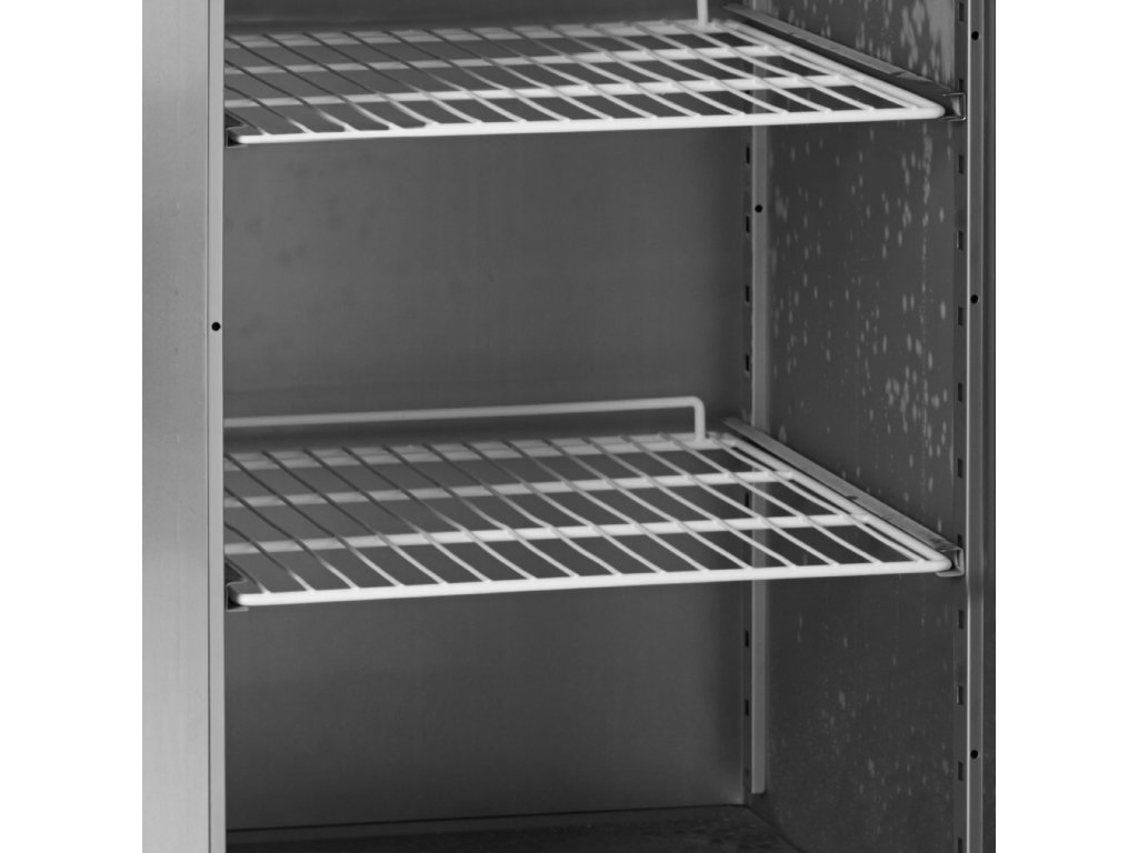 Celonerezová chladicí skříň TEFCOLD GUC je ideální skříň do zázemí gastroprovozů. Je vhodná pro uskladnění ovoce, zeleniny, pekařského těsta, mléčných výrobků, salámů, masa, uzenin i ryb. Je možné měnit otevírání dveří (nutnst dokoupení levého pantu). Police GN 2/1 jsou nastavitelné s max. nosností 110 kg/m², pro snadné přemístění je chladicí skříň vybavena kolečky, 2 jsou s brzdou. Je možné také dokoupit nastavitelné nožičky.nerezové provedení|ventilované chlazení|digitální termostat a teplotní displej|zámek|samozavírací dveře|nastavitelné police GN 2/1|odolná kolečka|prověřená kvalita za příznivou cenu