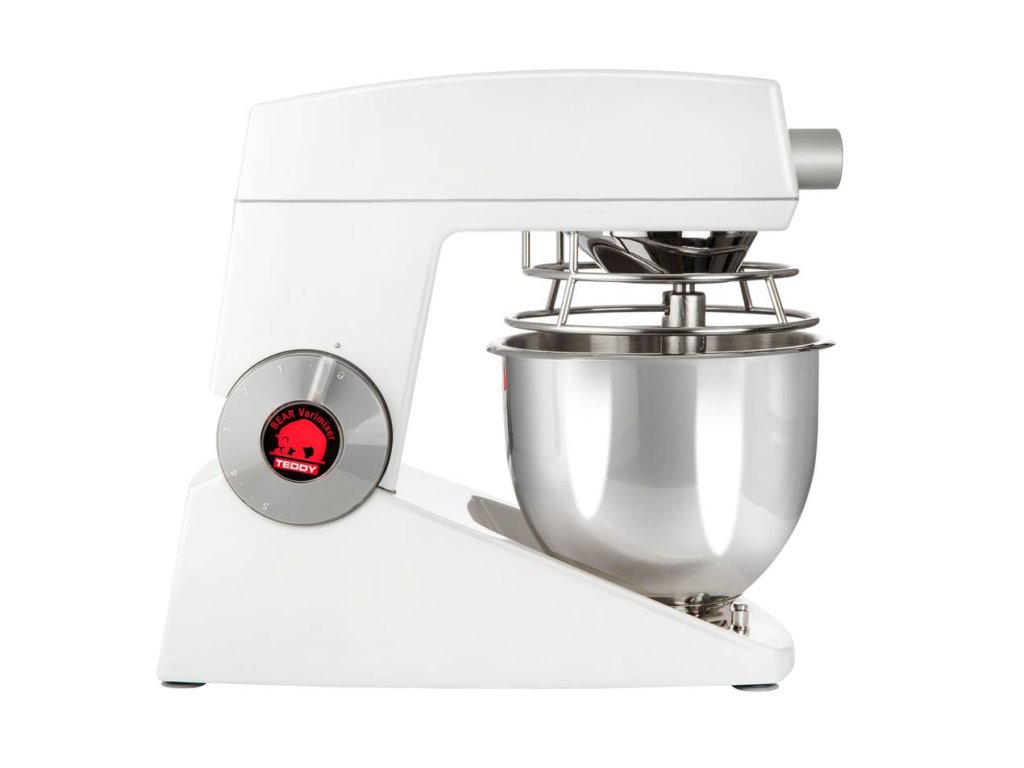 Univerzální stolní hnětač TEDDY s kapacitou nádoby 5 l, s plynulou regulací otáček a silným motorem, vyznačující se tichým chodem, stabilitou a jednoduchou obsluhou, od dánského výrobce VARIMIXER.Verze S POHONEM příslušenství pro mlýnek na maso