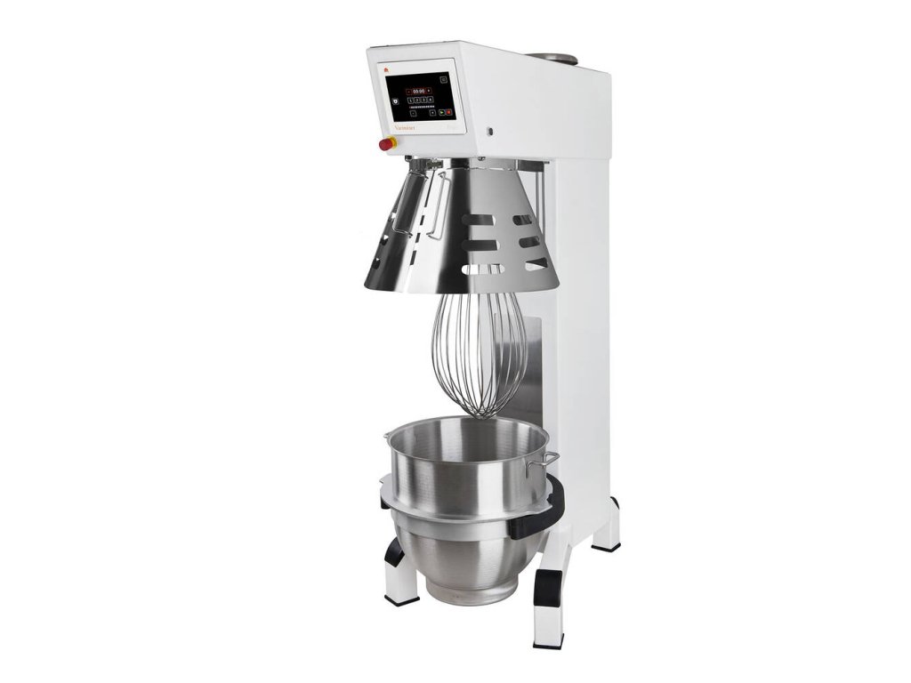 Univerzální planetární hnětač AE60 ERGO BEAR VL-4 s ergonomickými parametry s kapacitou nádoby 60 l, s plynulou regulací rychlosti, v bílém provedení, od dánského výrobce VARIMIXER. Elektrický zdvih nádoby a elektrická regulace rychlosti.