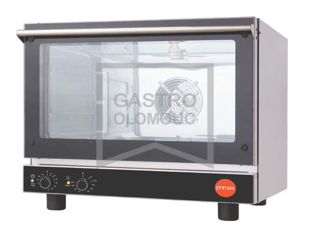 Pekařská a cukrářská pec Fast Value FV-CME604-HR Pekařské a cukrářské pece předního Italského výrobce firmy Primax jsou vyrobeny v Itálii z evropských komponentů a kvalitní nerezových materiálů, sestaveny pod přísnou kontrolou v moderním funkčním designu. Pece FAST jsou výborným řešením pro pekařské, cukrářské a jiné gastro provozy k přípravě čerstvého, nebo zmraženého pečiva a dalších produktů, ideální pro kavárny, bary, rychlá občerstvení, čerpací stanice, plovárny. Celonerezové provedení AISI 430 (304), izolovaná komora (keramická vlákna), varný prostor se zaoblenými hranami a lisovaným dnem. Snadné manuální ovládání s nastavení teploty 50°- 270°C, nastavením času 0 - 120 min. a trvalý chod (nekonečno). Optimální prodění vzduchu zajišťuje výkonný ventilátor s reverzním chodem a výkonná nerezová tělesa Incoloy 800 (5,5kW), vnitřní osvětlení komory. Snadno vyjímatelné těsnění varné komory. Odvětrávaná výklopná dvířka s dvojitým sklem a nerezovým bezpečné umístěným madlem. Nerez vyjímatelné zásuvy s roztečí 70 mm. Celonerezové provedení AISI 430 nerezový varný prostor AISI 304 se zaoblenými hranami izolovaná varná komora (keramická vlákna) snadné mechanické ovládání nastavení teploty 0-270°C nastavení času 0-120min + nekonečno výkonný ventilátor s reverzním chodem výkonná nerezová topná tělesa Incoloy 800 vnitřní halogenové osvětlení komory snadno vyjímatelné těsnění varné komory odvětrávaná výklopná dvířka s dvojitým sklem nerez vyjímatelné zásuvy s roztečí 70mm kapacita komory pro 4 plechy 600x400mm (GN1/1).