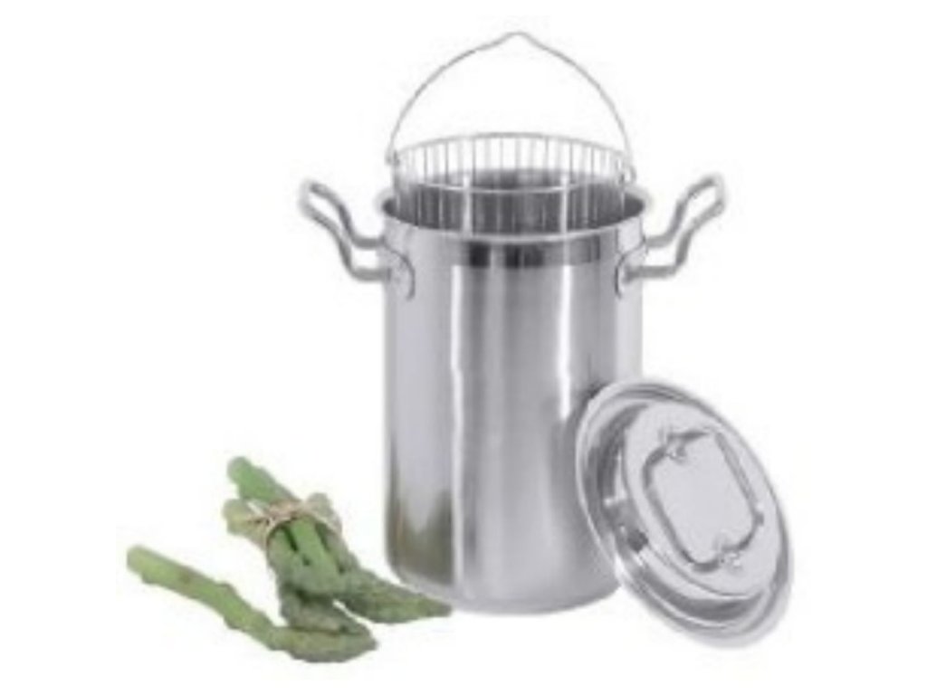 Kvalitní nerezový hrnec s košíkem pro přípravu zeleniny např. chřestu. Průměr hrnce 16cm, výška 23,5cm, objem 4,5l.