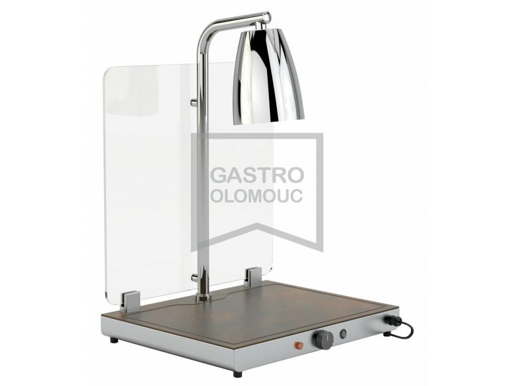 Infra pracovní stanice se spodní prolisovanou ohřevnou deskou v nerez provedení AISI 304, kterou lze použít samostatně nebo s příplatkovou žulovou pracovní deskou (dekor LAVA nebo OXIDE). Plexi hygienický zákryt. Regulace teploty desky +30° až +90 °C (500 W). Infra červená lampa (1 x 250 W) umístěná na ramenu s kulovým kloubem a nezávislým spínačem osvětlení. V balení je 1 ks infra žárovky 250 W.