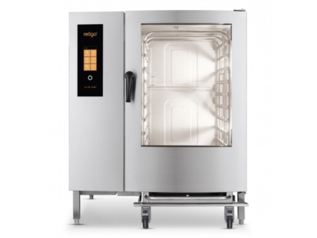 Model konvektomatu Retigo Vision 1221 je ideální pro provozy s kapacitou 400-600 jídel denně. Rozměr gastronádob je GN 2/1 (650x530 mm) nebo GN 1/1 (530x325 mm). V základní výbavě tohoto konvektomatu je zavážecí vozík. Dále lze k této velikosti dokoupit i mnoho dalšího příslušenství – náhradní zavážecí vozík, vybavení pro banketový systém výdeje apod. Systém vývinu páry je nástřikový nebo bojlerový. Tepelným zdrojem je pouze elektřina.