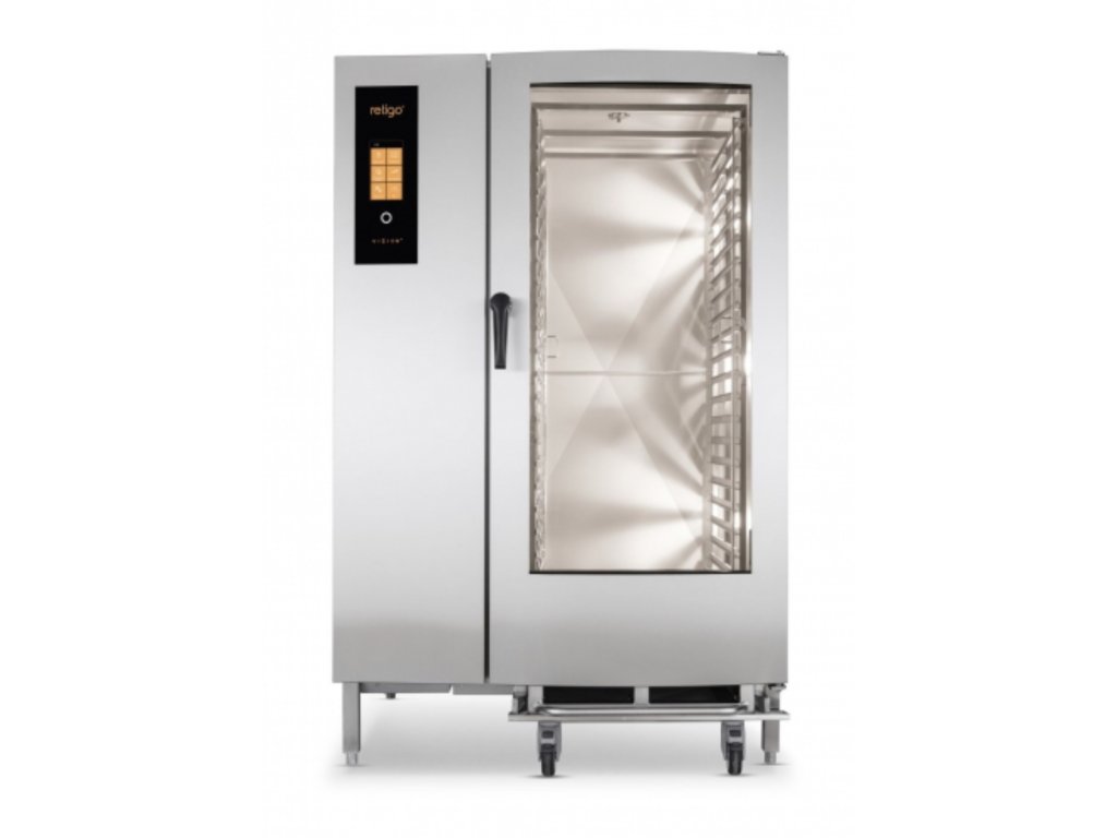 Model konvektomatu Retigo Vision 2021 je ideální pro provozy s kapacitou 600-900 jídel denně. Rozměr gastronádob je GN 2/1 (650x530 mm) nebo GN 1/1 (530x325 mm). V základní výbavě tohoto konvektomatu je zavážecí vozík. Dále lze k této velikosti dokoupit i široké příslušenství – náhradní zavážecí vozík, vybavení pro banketový systém výdeje apod. Systém vývinu páry je nástřikový nebo bojlerový. Tepelným zdrojem je elektřina nebo plyn.