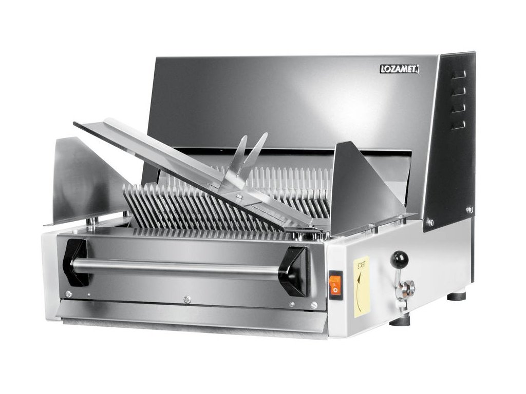 Stolní kráječ MKP 13.7 se zvedacími rameny a 30 zubatými noži od výrobce LOZAMET.