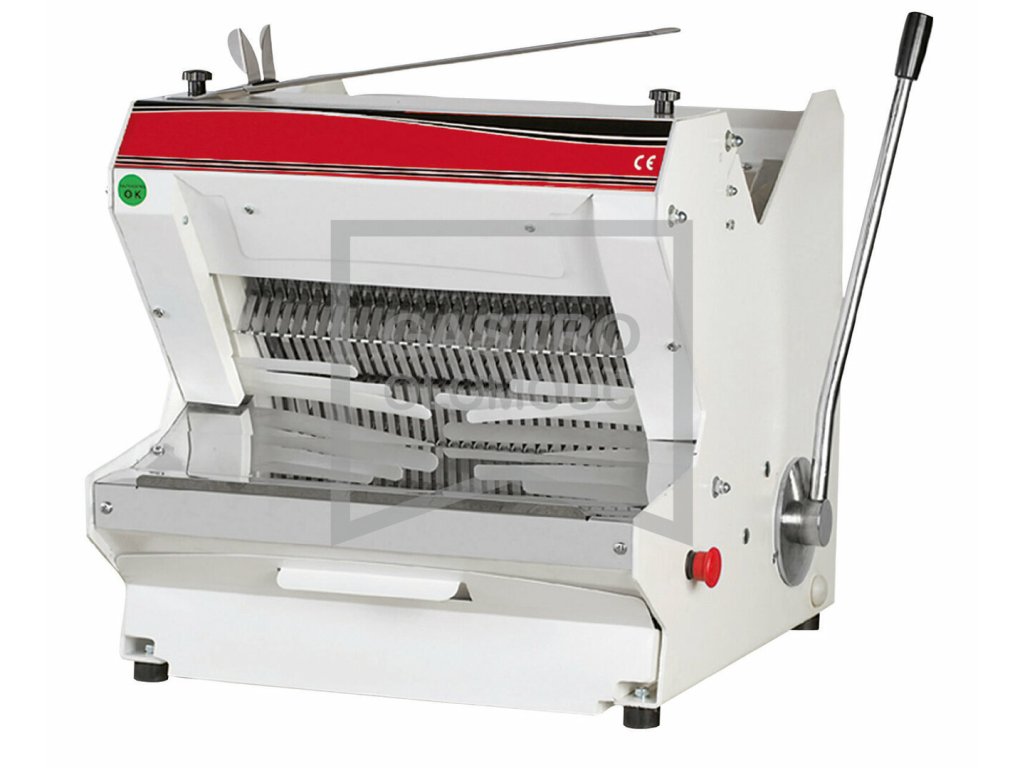 Vyprázdnění řezné komory je snadné a bezpečné. Součástí kráječe je také STOP tlačítko, v případě nutnosti zastaví chod krájení. Stroj je vybaven bezpečnostním krytem a pojistkou. Pohon nožů je zajišťován napájením o 230 V s příkonem 0,37 kW. Kráječ chleba je vyroben z lakovaného kovu, dotykové plochy jsou z nerezové oceli. Zařízení je svojí konstrukcí určeno pro lehčí gastronomické provozy a domácnosti. Nenáročné na potřebný prostor.