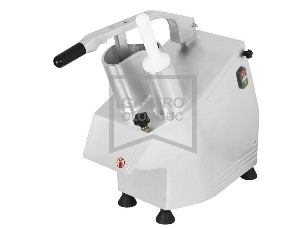 Vybaven dvěma plnícími otvory. Kulatý plnící otvor (průměr 55mm) pro přesné a rovné krájení dlouhých produktů (s plastovou přítlačkou) a velký oválný plnící otvor (80x170mm) s pákovou kovovou přítlačkou vybavenou koncovým spínačem pro bezpečné plnění. Vyhazování suroviny dopředu pro snadné odebírání a minimální požadavky na pracovní prostor.
