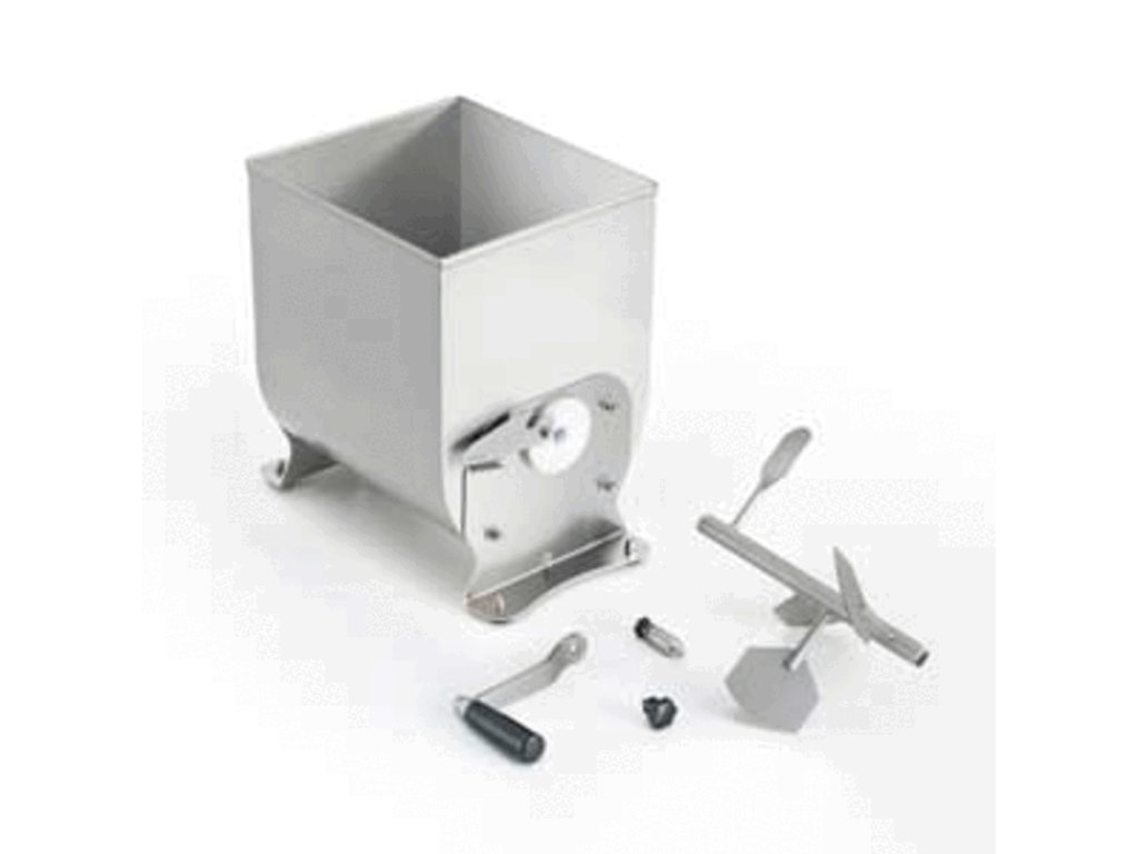 - manuální míchačka masa s jednou lopatkou ovládaná pomocí kliky