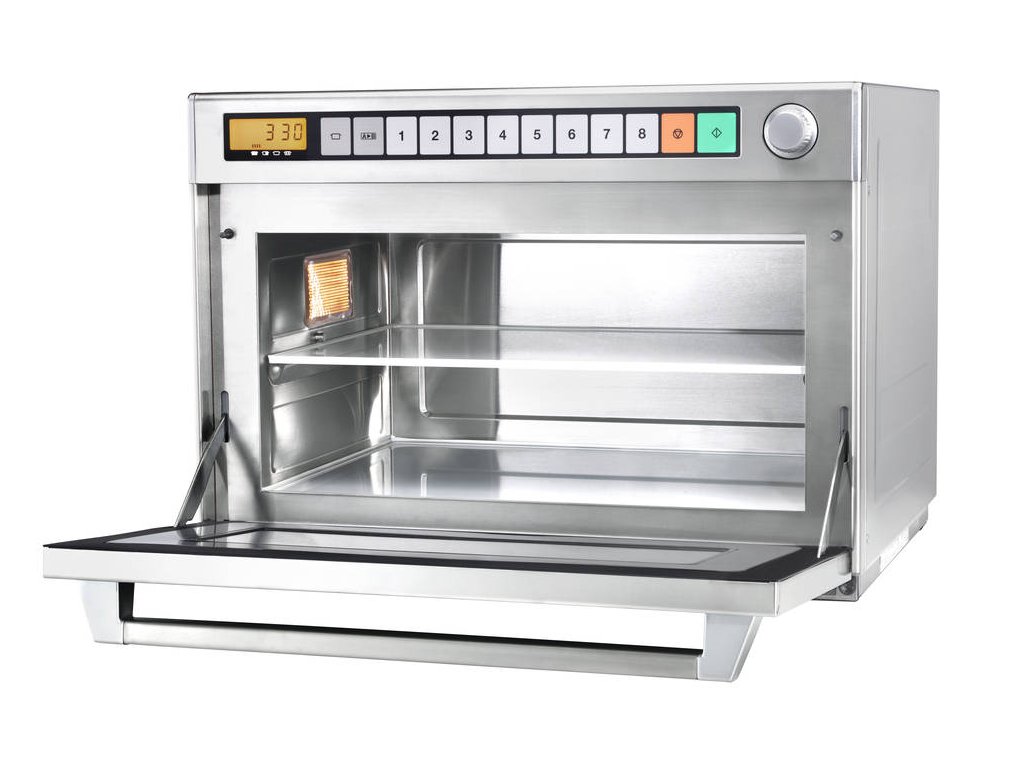 - profesionální mikrovlnná trouba určená do velkých provozů, kde se zpracovává více porcí najednou, popř. po sobě