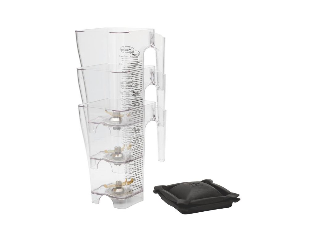 - stohovatelné nádoby s vyznačenou měrnou stupnicí v mm do 1,4 l přizpůsobené pro leváky a praváky, stohovatelná víka