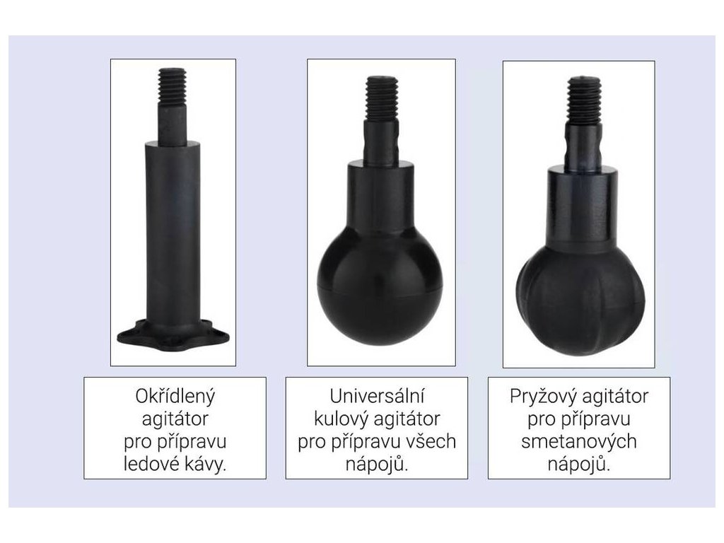 - 3 nástroje: okřídlený agitátor, kulovity agitátor, pryžový agitátor