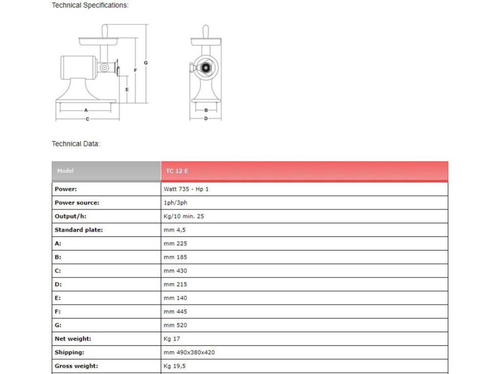 Mlýnek na maso TC 12 E INOX, 230 V od italského výrobce SIRMAN.