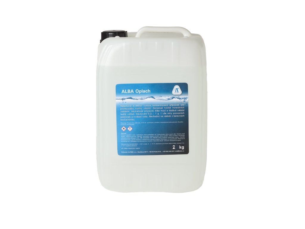 Zamezuje tvorbě minerálních usazenin, neutralizuje přípravek ALBA Mycí a dodává nádobí lesklý vzhled. Dávkování 0,2–1 g / l dle míry provozních podmínek a tvrdosti vody. Nevhodný na nádobí z barevných kovů a hliníku.