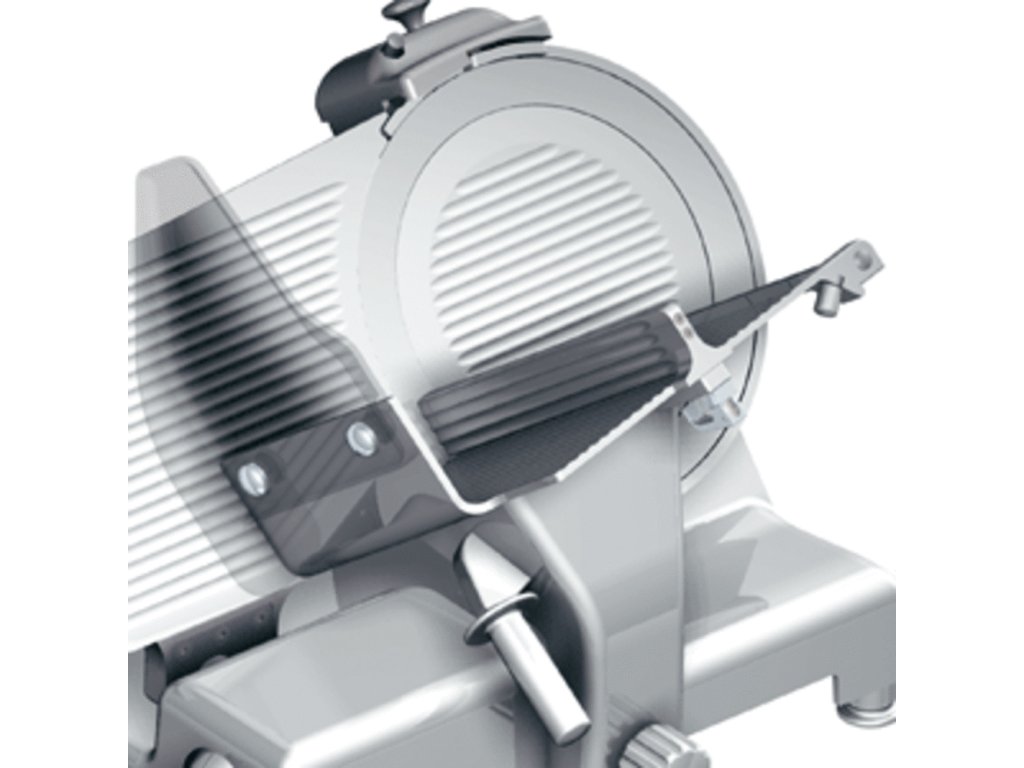 - zpřesňuje seřizování tloušťky plátku – zvláště vhodné při krájení na tenké plátky, mikrometrická regulace tloušťky plátku