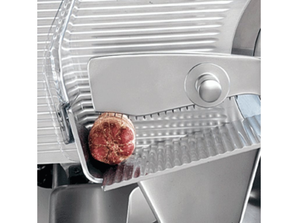 - zpřesňuje seřizování tloušťky plátku – zvláště vhodné při krájení na tenké plátky, mikrometrická regulace tloušťky plátku
