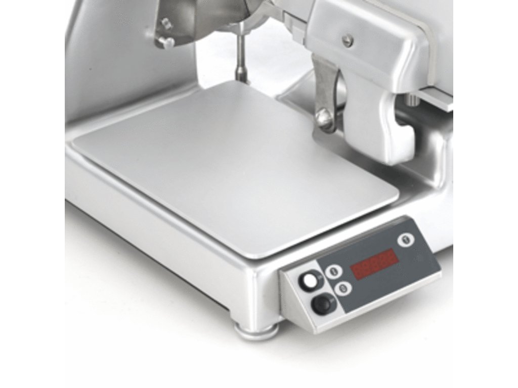 - zpřesňuje seřizování tloušťky plátku – zvláště vhodné při krájení na tenké plátky, mikrometrická regulace tloušťky plátku