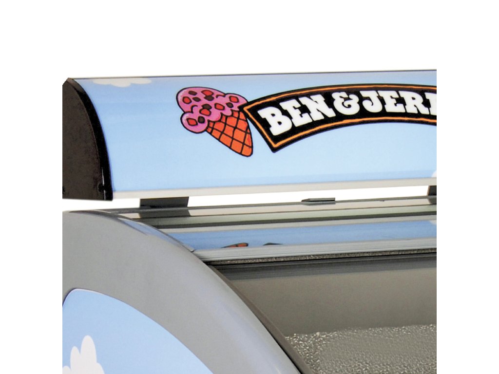 Prémiová řada pultových mrazniček NIC-SC má skvělý design se zaoblenými, šedými rohy a hranami a rovnými posuvnými prosklenými víky. Má velmi stabilní a pevnou konstrukci a navíc je vybavena kolečky, takže s ní lze snadno manipulovat a přesouvat ji po provozovně. Mraznička se skvěle hodí k vystavování mražených potravin včetně zmrzliny. Dodává se s kompletní sadou košů.zahrnuje plnou sadu košů|rovná posuvná prosklená víka se zámkem|ideální pro reklamní polep|digitální teploměr|kolečka s brzdou|klimatická třída 5 - vysoký výkon i v teplém prostředí