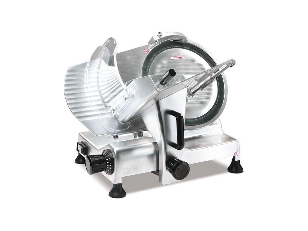 - nářezový stroj je poháněn motorem o výkonu 180 W, má tloušťku krájení 0 - 12 mm, která je plynule regulovatelná