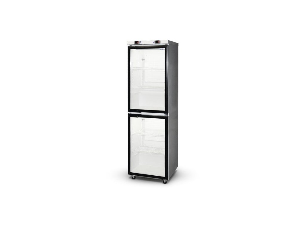 Dvoudveřová chladicí skříň s prosklenými dveřmi s kompletně oddělenými prostory.Vlastnosti: