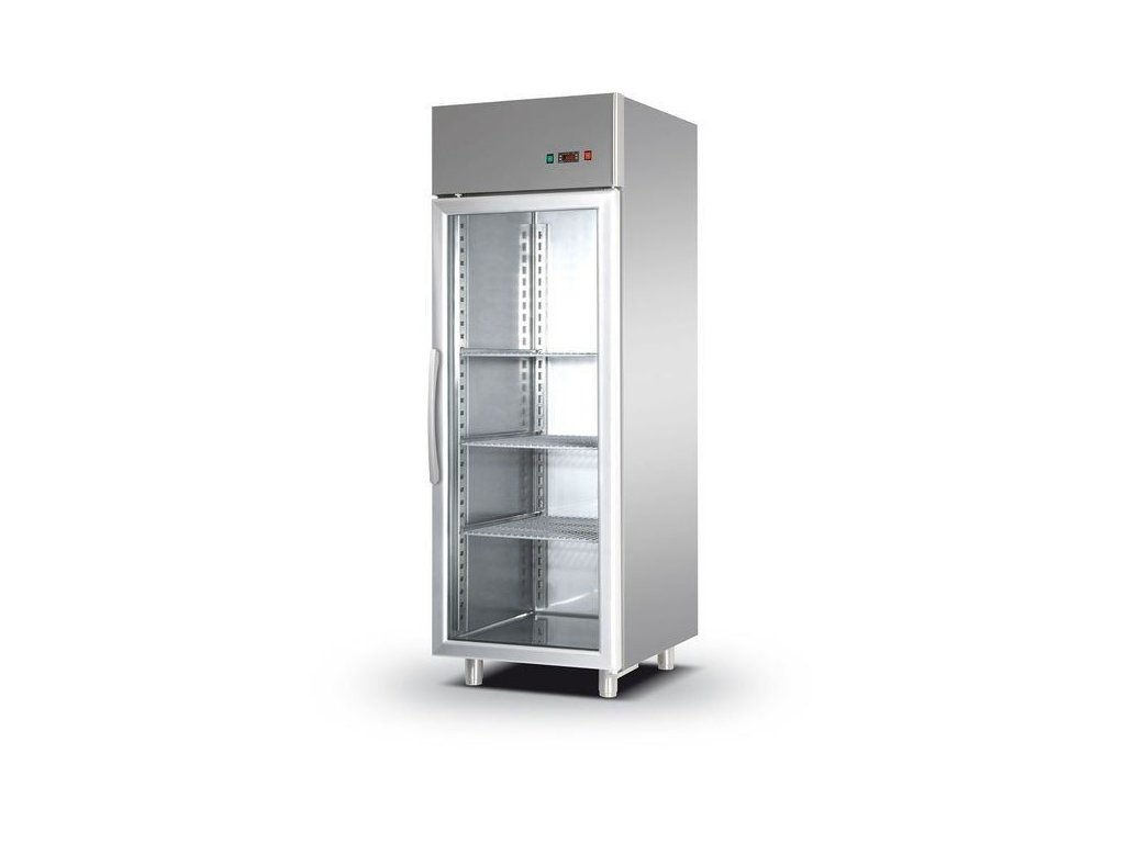 Jednodveřová celonerezová chladicí skříň s prosklenými dveřmi.Vlastnosti: