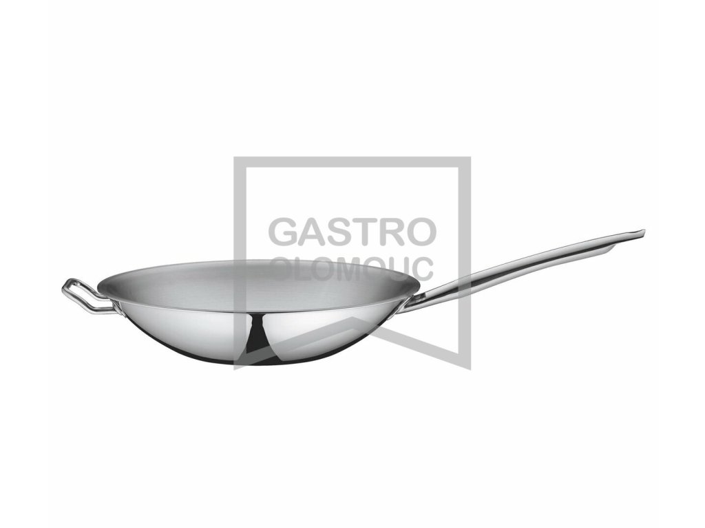 Pánev WOK nabízíme ve dvou provedeních, s kulatým a s plochým dnem, obě o průměru 350 mm a objemu 4 l. Pánev je vyrobena z ušlechtilé oceli (18/0- 18% Chrom) a vnitřní povrch je nerezový (18/10- 18% Chrom, 10% Nikl). Je tedy velmi odolná a slibuje dlouhou výdrž i v tvrdých podmínkách velkých kuchyní. Dlouhá ergonomická rukojeť se skvěle drží a slibuje tak pohodlnou přípravu asijských pokrmů, smažené rýže, nudlí, úpravu zeleniny a masa. Pánev s plochým dnem má ještě navíc ucho pro lepší manipulaci. Ucho se nerozpálí ani v případě delšího vaření a krásně padne do ruky.