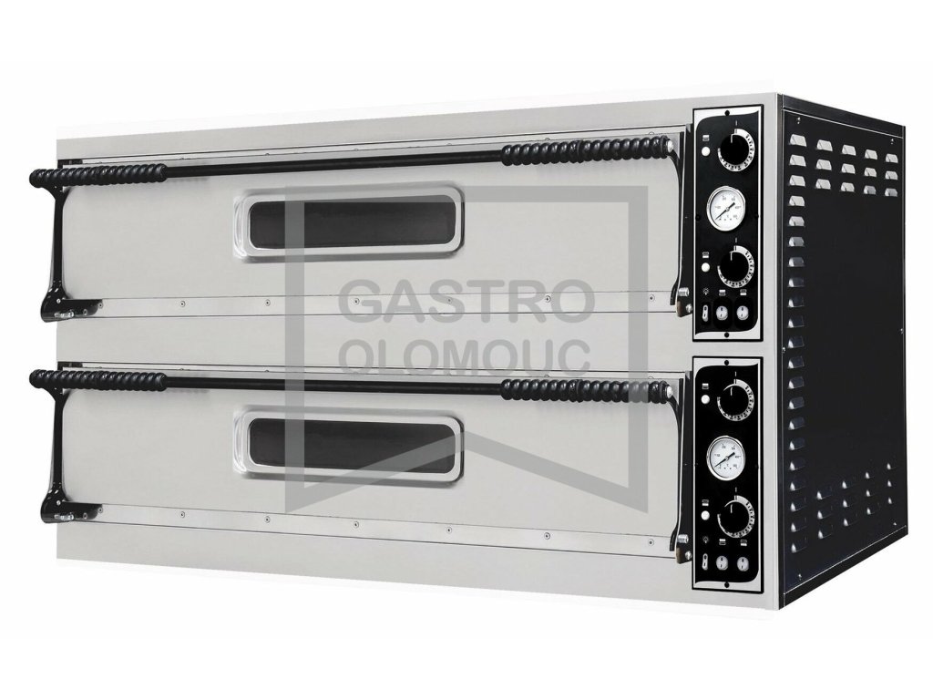 Dvoukomorová "mělká-široká" elektrická pizza pece řady BASIC XL. Snadné a přehledné mechanické ovládání umožňuje individuální nastavení výkonu spodních a horních těles v komoře případně vypnutí spodního, nebo horního tělesa. Pece jsou vybaveny analogovým teploměrem,a termostatem 50-450°C, vnitřním osvětlenímkomory. Provedení s nerezovým čelem, kvalitní izolací a opláštění v laku.