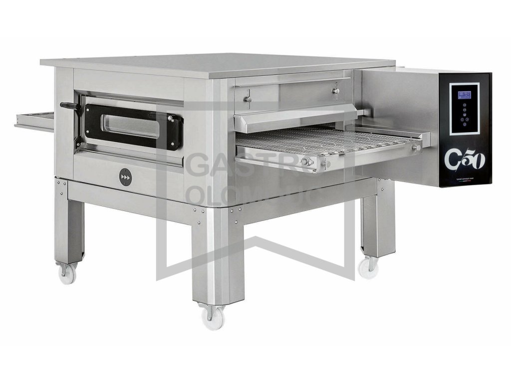 nastavení času zapnutí/vypnutí, rychlosti posuvu pásu a nastavení teploty horních a spodních těles. Úspora až 30% energie oproti tradičním „statickým” pizza pecím. Pece je možno využít kromě pečení pizzy, také pro pečení chleba, plochých těst, pizza tyčinek „grissini”, ale i pro přípravu zeleniny a mnoho dalších gastronomických specialit. Prosklené dveře umožňují kontrolované pečení a snadný přístup pro čištění komory.