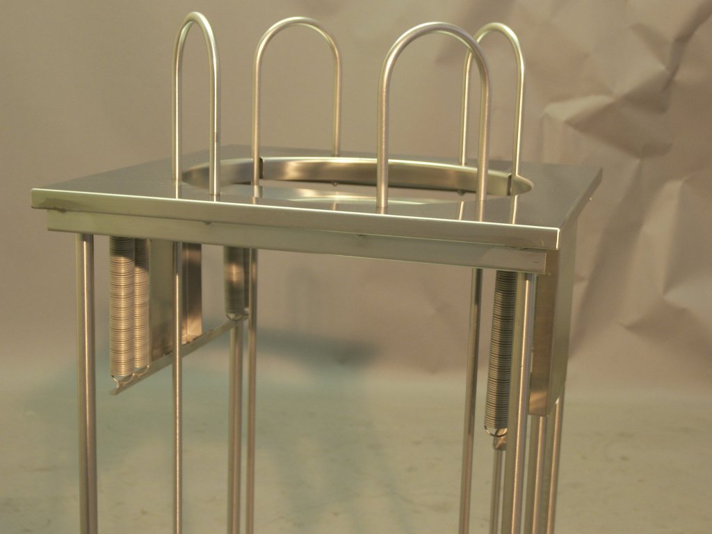 Konstrukce šachty je vyrobena z chromniklové oceli 18/10. Zvedací plošina umožňuje plynulý pohyb pomocí tažných pružin, které zajišťují udržování konstaní výškové úrovně horního talíře.Nastavitelnými tyčemi pro k přizpůsobení velikosti plochy pro vkládané nádobí.