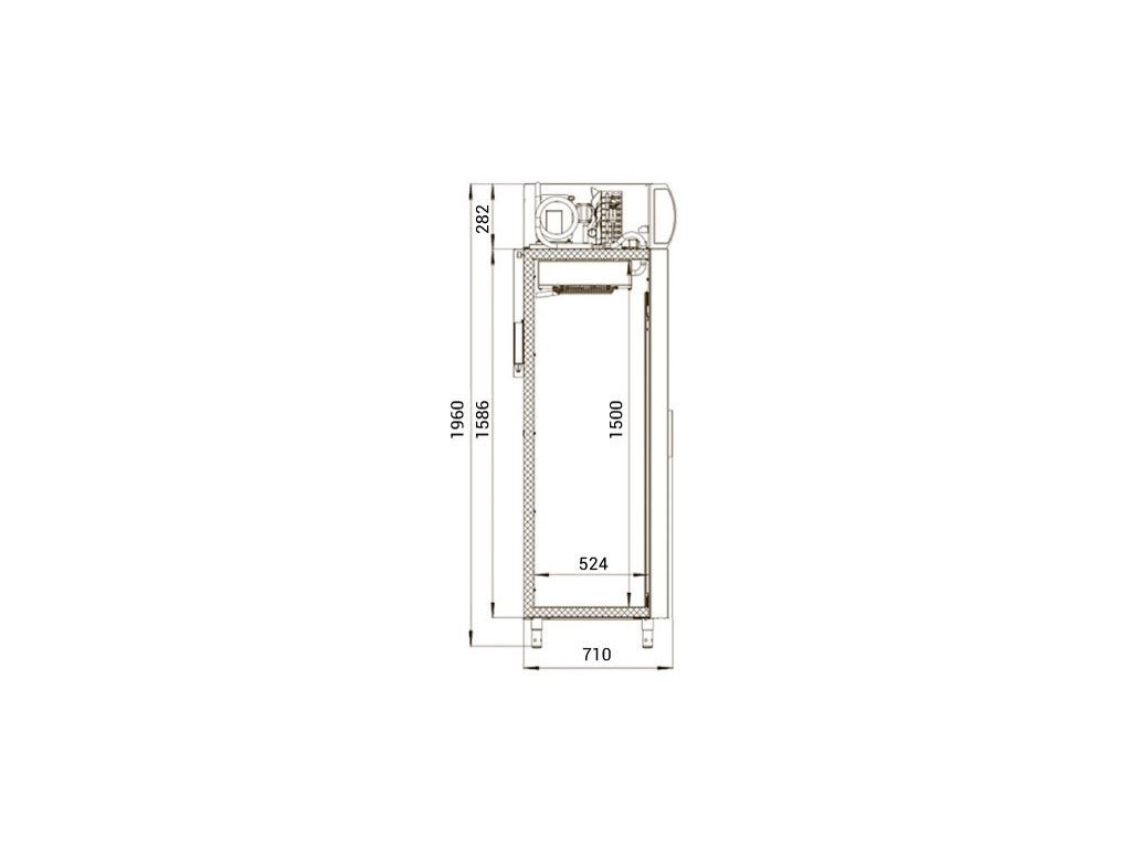 Nad dveřmi chladicí skříně je zaoblený světelný profil, který je vhodný pro vlastní reklamu.