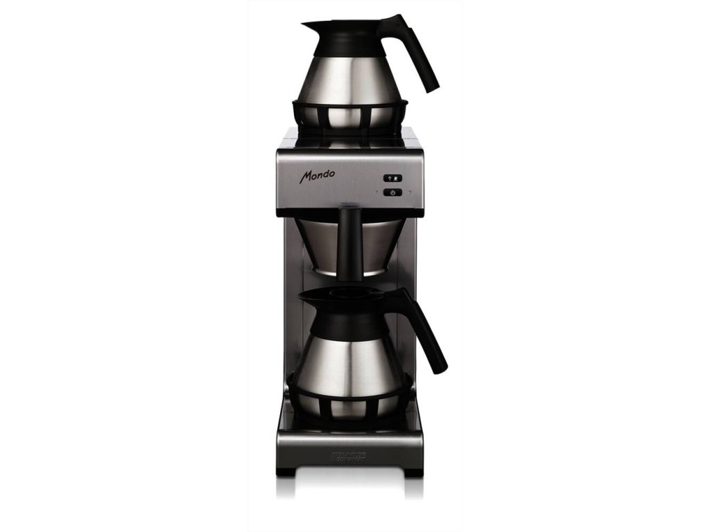 Překapávač kávy MONDO Marine od nizozemského výrobce BRAVILOR BONAMAT. * bez připojení na vodu, * 1 filtrační jednotka, * 2 výhřevné plotýnky, * 2 konvice, * produkce 144 šálků/hod., * nerezový držák na filtry, * signalizace zavápnění, * akustický signál dokončení překapávání.