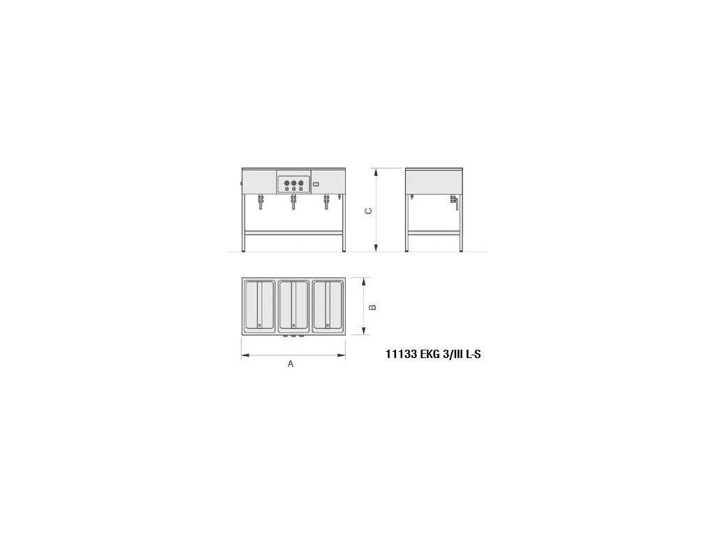 Výdejní pult je vyroben z chromniklové oceli 18/10. Jednotlivé vany jsou určeny pro výdej z gastronádob 1/1 gastronormy, popř. menších. Hloubka GN může být až 200 mm.Každá vana disponuje samostaným vyhříváním topným tělesem a samostatným termostatem pro regulaci teploty lázně až do 90°C.