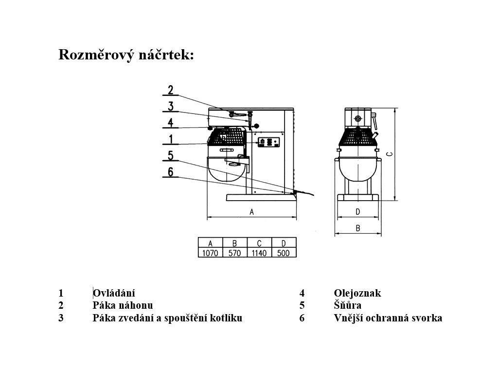 Motorický zdvih je zásadní śporou námahy a ylepšuje bezpečnost práce. Zdvih za chodu - lepší mísení materiálu bez hrudek, žmolků a nepromísených příměsí. Třírychlostní motor - možnost volby nejvhodnějších otáček pro příslušně zvolenou práci se strojem. Mechanický spínač ochranného krytu kotlíku - záruka bezpečnosti. Originální příslušenství za příplatek: výkonný mlýnek na maso, krouhačka a řezačka zeleniny, mlýnek na mák, šířka 570 mm - šetří místo v kuchyni, váha 330 kg - snižuje otřesy a hlučnost při chodu přístroje při plné zátěži. Rychlosti: 72, 146, 290 otáček / minutu.