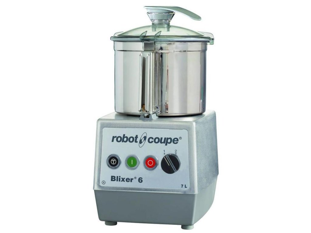 Stolní BLIXER 6 od francouzského výrobce ROBOT COUPE. Vhodný pro přípravu kašovité stravy v nemocnicích, kojeneckých ústavech, ÚSP, jeslích s max. denní kapacitou do 100 porcí.Spe Stolní BLIXER 6 od francouzského výrobce ROBOT COUPE. Vhodný pro přípravu kašovité stravy v nemocnicích, kojeneckých ústavech, ÚSP, jeslích s max. denní kapacitou do 100 porcí.Speciální typ kutru, který kombinuje funkci mixéru a kutru umožňuje:díky speciálnímu noži a stíracímu rameni víka i nádoby dokonalé rozmělnění surovin,snadnou přípravu mixovaných jídel ze syrových, nebo vařených surovin – v tekuté, polotekuté a kašovité formě, realizaci pokrmů se změněnou strukturou podávané individuálně ve zdravotnických zařízeních,přípravu chuťovek, předkrmů, zákusků, šlehaných krémů, emulzí nebo i specialit.MOTOROVÝ BLOKindukční motorasynchronní motor pro profesionální použití zaručující delší životnost a spolehlivost stroje; tichý chod motoru bez jakýchkoliv vibrací, motor nevyžaduje žádnou údržbu,nerezová hřídel,magnetický bezpečnostní systém, zajišťující při nesprávném sesazení zařízení, nebo v momentu otevření víka zastavení, popř. nespuštění blixeru,2 regulace rychlosti.Pulsní tlačítko pro lepší kontrolu konzistence a větší přesnost zpracování.Kryt motorového bloku je kovový.NÁDOBA BLIXERUOdnímatelná nádoba z nerezu s ergonomickým držadlem.Stírací zařízení složené ze stěrek víka a stěrky nádoby, snadno rozebíratelné.Průhledné polykarbonátové víko vybavené rukojetí a otvorem umožňuje přidávání dalších ingrediencí v průběhu sekání.Standardní vybavení:nerezová nádoba,stírací zařízení víka a nádoby,nůž s jemným zubatým ostřím – umožňuje dokonalé rozmixování syrových nebo vařených surovin až do kašovité konzistence Lze doobjednat: nůž s hrubým zubatým ostřímDoplňkové parametry