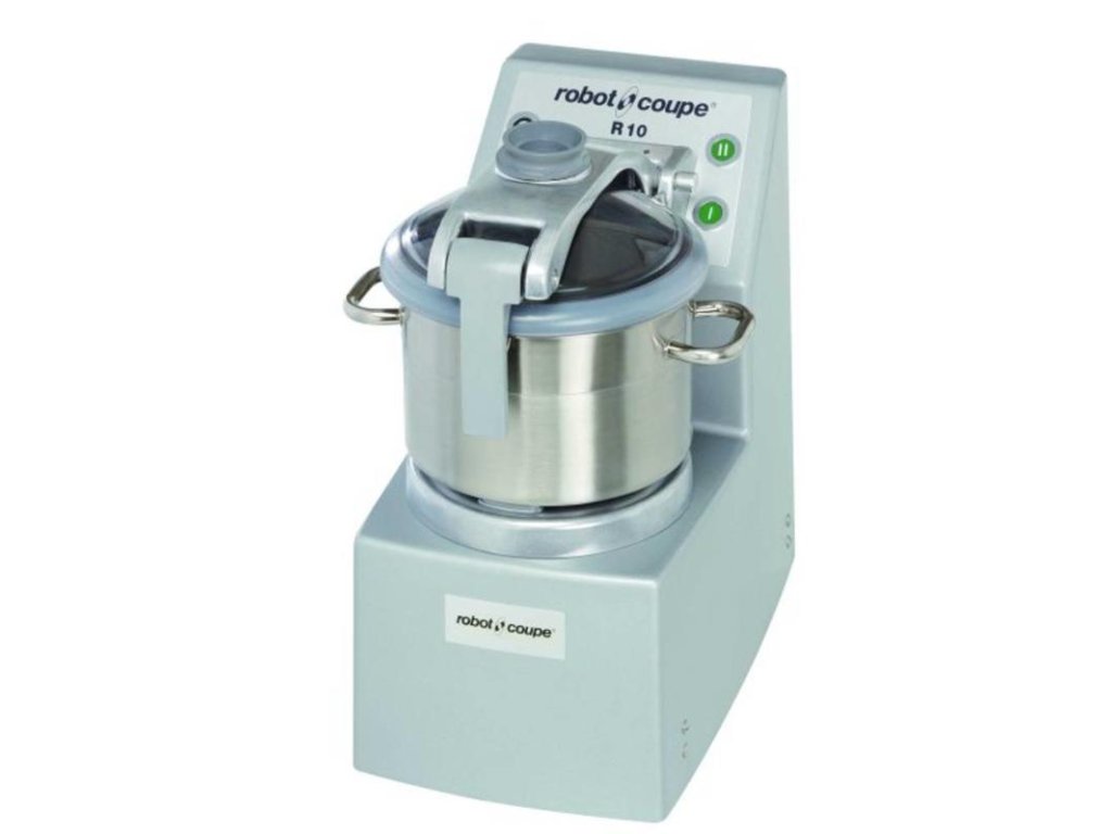 Stolní kutr R 10 E od francouzského výrobce ROBOT COUPE.Určen pro menší gastronomické provozy – restaurace, bistra, lahůdkářství a cukrárny s max. denní kapacitou do 200 porcí.Umožňuje zpracování masa, zeleniny a Stolní kutr R 10 E od francouzského výrobce ROBOT COUPE.Určen pro menší gastronomické provozy – restaurace, bistra, lahůdkářství a cukrárny s max. denní kapacitou do 200 porcí.Umožňuje zpracování masa, zeleniny a ovoce, přípravu těsta, paštik, majonéz, pyré, pomazánek a strouhanky a rovněž sekání bylinek a koření a drcení ořechů a mandlí.MOTOROVÝ BLOKindukční motorasynchronní motor pro profesionální použití zaručující delší životnost a spolehlivost stroje;tichý chod motoru bez jakýchkoliv vibrací,motor nevyžaduje žádnou údržbu,nerezová hřídel,magnetický bezpečnostní systém, zajišťující při nesprávném sesazení zařízení nebo v momentu otevření víka zastavení, popř. nespuštění kutru.2 regulace rychlostiPulsní tlačítko pro lepší kontrolu konzistence a větší přesnost zpracování.Kryt motorového bloku je kovový.NÁDOBA KUTRUOdnímatelná nádoba z nerezu s ergonomickým držadlem.Lze v ní sekat maso, zeleninu, mandle, oříšky, koření, připravovat majonézu, pyré, protlaky, pomazánky, strouhanku a hnětat těsto.Průhledné polykarbonátové víko s otvorem umožňuje přidávání dalších ingrediencí v průběhu sekání.Standardní vybavení:nerezová nádoba,nůž celo nerezový s rovným ostřím – rozebíratelnýLze doobjednat:nůž s rovným ostřím – vhodný pro přípravu emulzí, pěn, pomazánek, pro jemné i hrubé rozsekání masa a zeleninynůž s jemným zubatým ostřím – pro nejjemnější zpracování – sekání zeleného koření a bylinek,nůž s hrubým zubatým ostřím – hnětení, sekání oříšků, mandlí, pro zmrzlé potraviny a ostatní tvrdé potravinyDoplňkové parametry