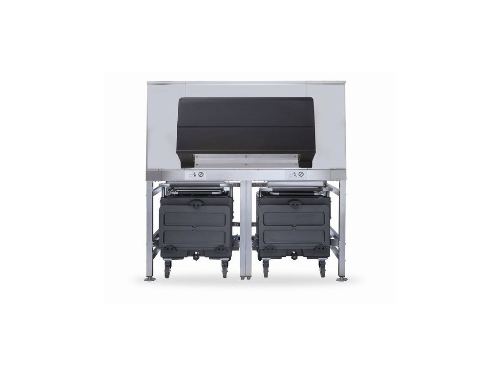 Díky systému First-in first-out je produkovaný led stále čerstvý a z hygienického hlediska nezávadný. Pevná nerezová konstrukce s 2 pojízdnými zásobníky z polyethylenu umožňuje bezpečnou a snadnou manipulaci s ledem.