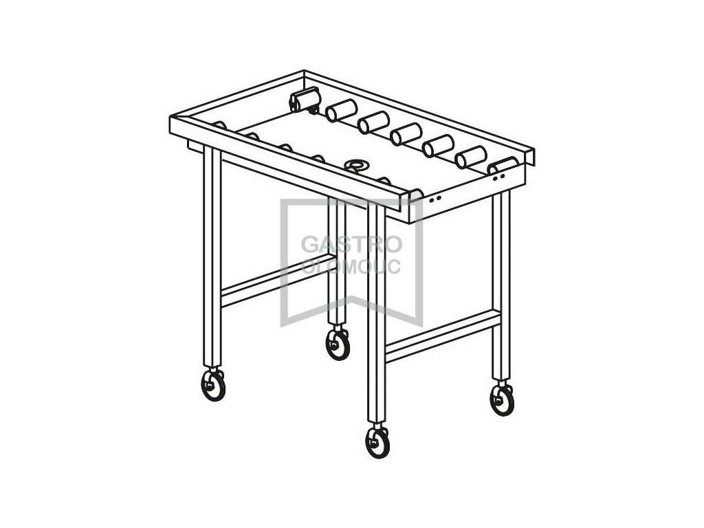 Stůl válečkový pojízdný s vanou 1640 x 650 x 850 mm