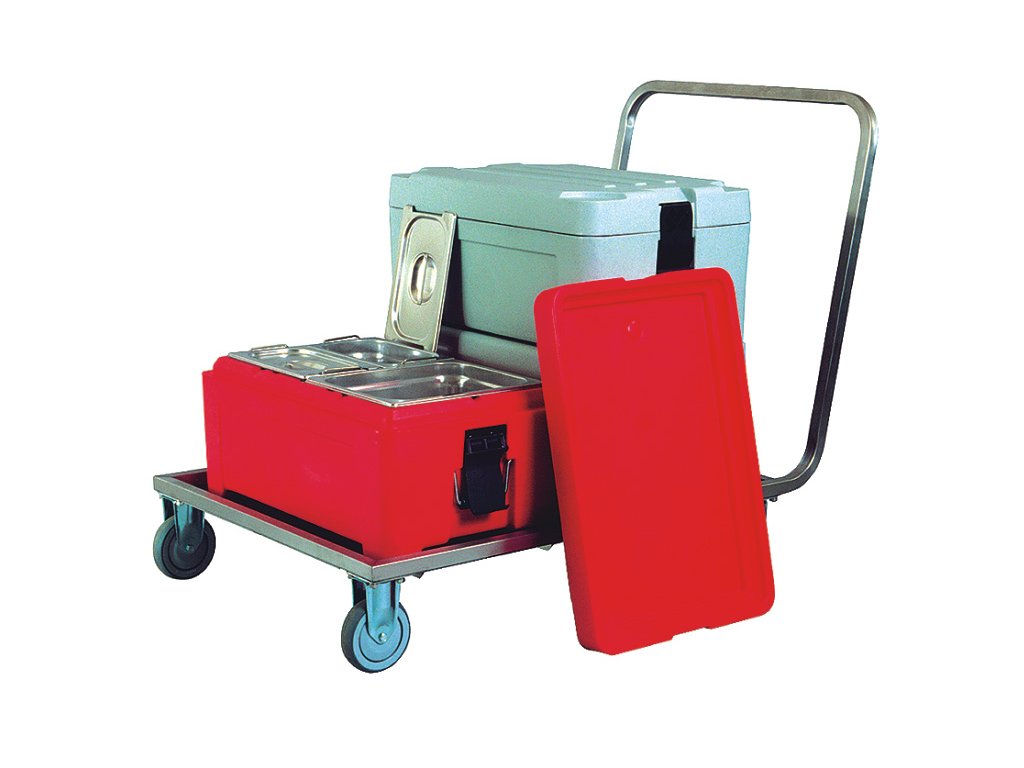 Manipulační vozík na termoporty, které je vyroben z chromniklové oceli 18/10.Jednoduchá konstrukce z nerezových profilů a broušeného plechu.