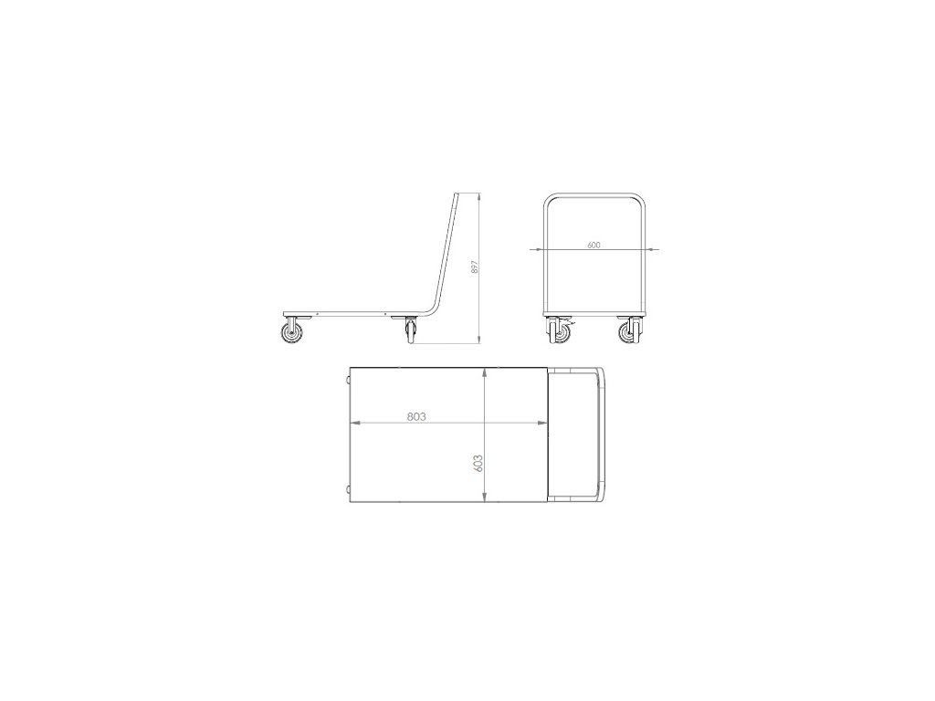 Na vyžádání lze dodat s bantamovými kolečky, popřípadě s kolečky v jiném průměru. Pracovní plocha má základní rozměr 800x600 mm a je navařena shora na nosných profilech.