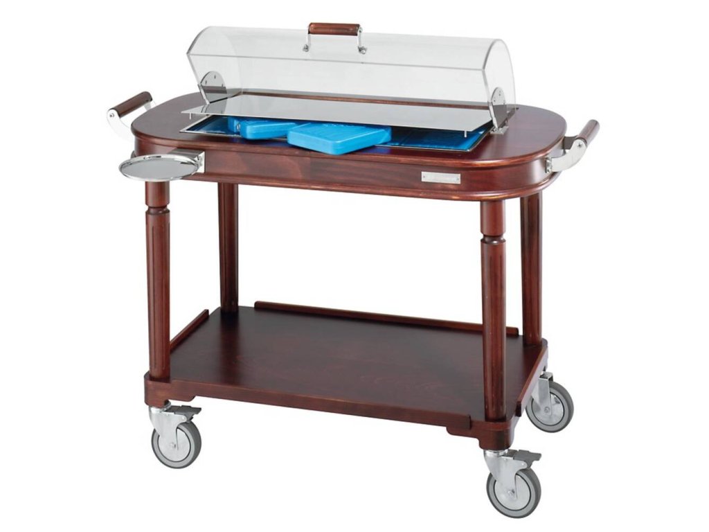 VOZÍK SERVÍROVACÍ NA ZÁKUSKY S PRŮHLEDNÝM OTOČNÝM KRYTEM - CHLAZENÝ